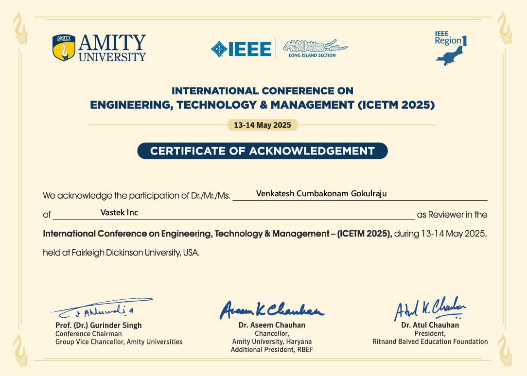 Venkatesh GokulRaju is a hands-on engineering executive, visionary R&D leader, and Senior IEEE Member with over two decades of innovation spanning AI, embedded systems, telecom infrastructure, and cloud-native platforms. His career rooted in startups, enterprise-scale programs, and global research labs blends deep technical mastery with systems thinking and product leadership.