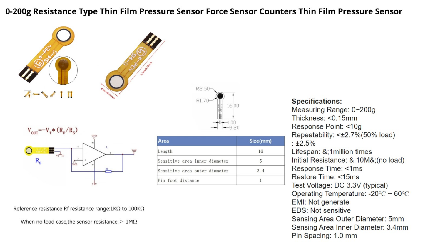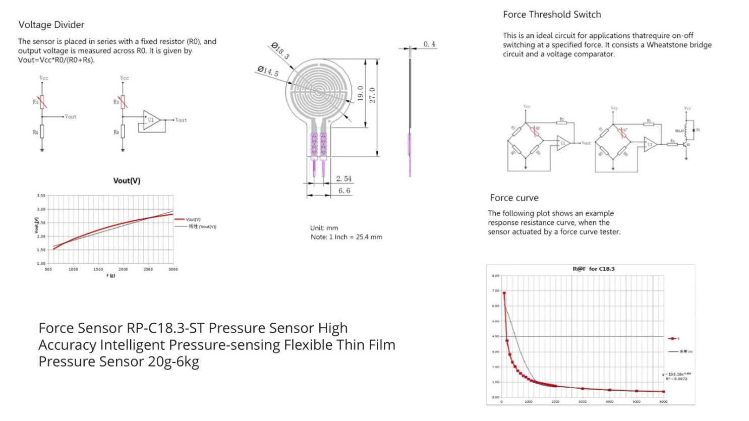 • Predictable sensor response curves matching datasheet force–resistance profiles