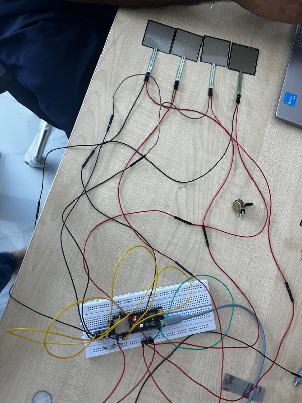 The proof-of-concept (POC) integrates multiple thin-film force sensors FSR-based, membrane-style resistive sensors (RP-C18.3-ST), and PVDF piezoelectric film sensors into a unified multi-channel load-sensing architecture designed to validate real-time pressure measurement, electrical behavior, and signal linearization workflows. Across all sensor types evaluated, the system demonstrates a consistent ability to convert mechanical force inputs ranging from 20 g to 6 kg into measurable analog signals using a combination of voltage-divider networks, Wheatstone configurations, and low-noise ADC acquisition.